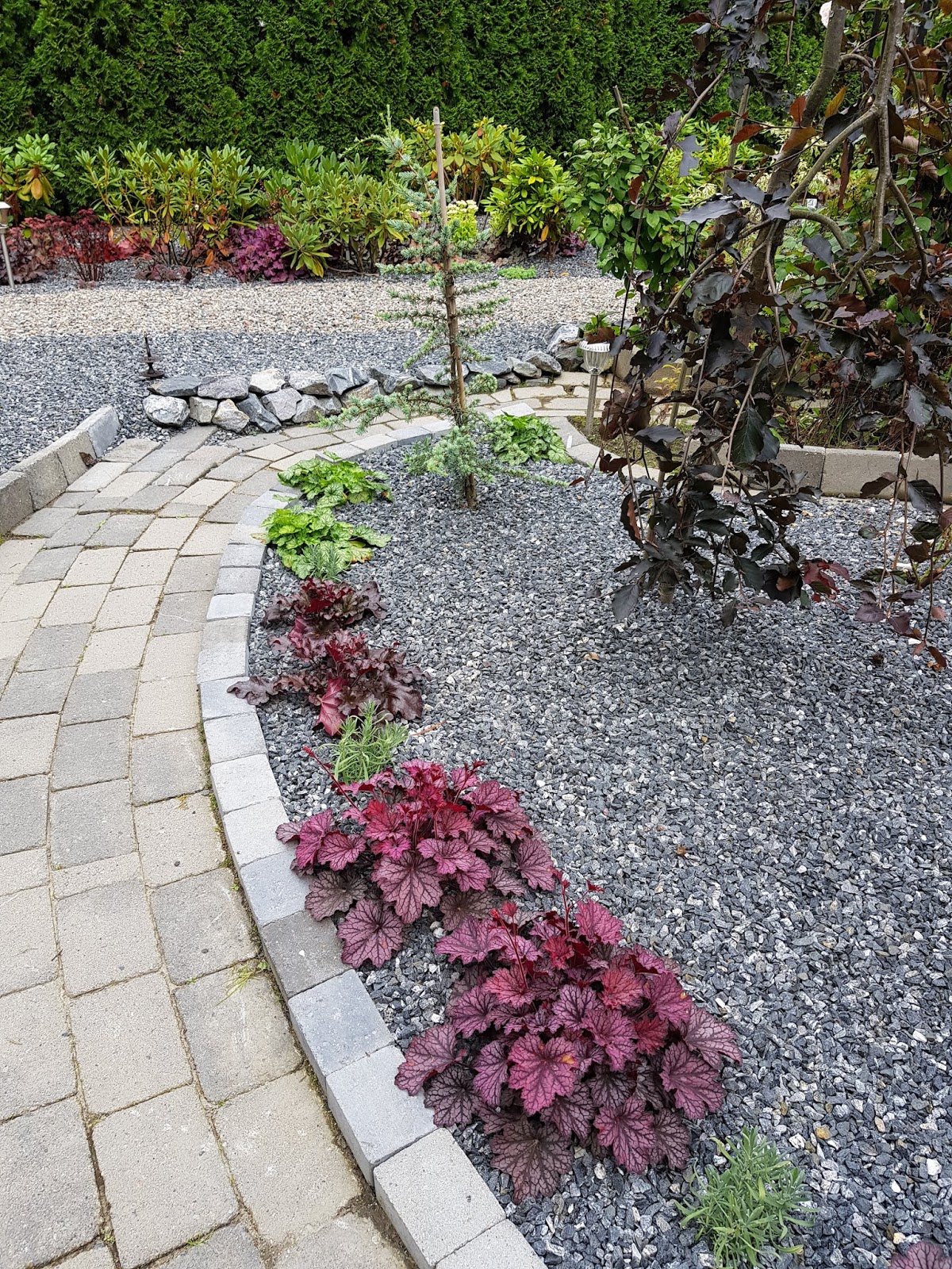 Jeg driver jo aldri bare med en ting om gangen, og her ble prosjektet fra 2018 fullført med å legge mer duk og grus. Dette er altså ved siden av steinsirkelen på høyre side og den mye omtalte 'Guernsey Cream' i midten.